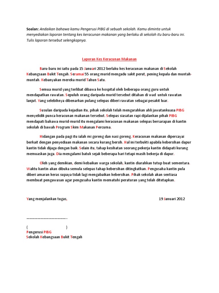 Menyediakan Laporan Tentang Kes Keracunan Makanan Yang Berlaku Di Sekolah Itu Baru Baru Ini Tulis Laporan Tersebut Selengkapnya
