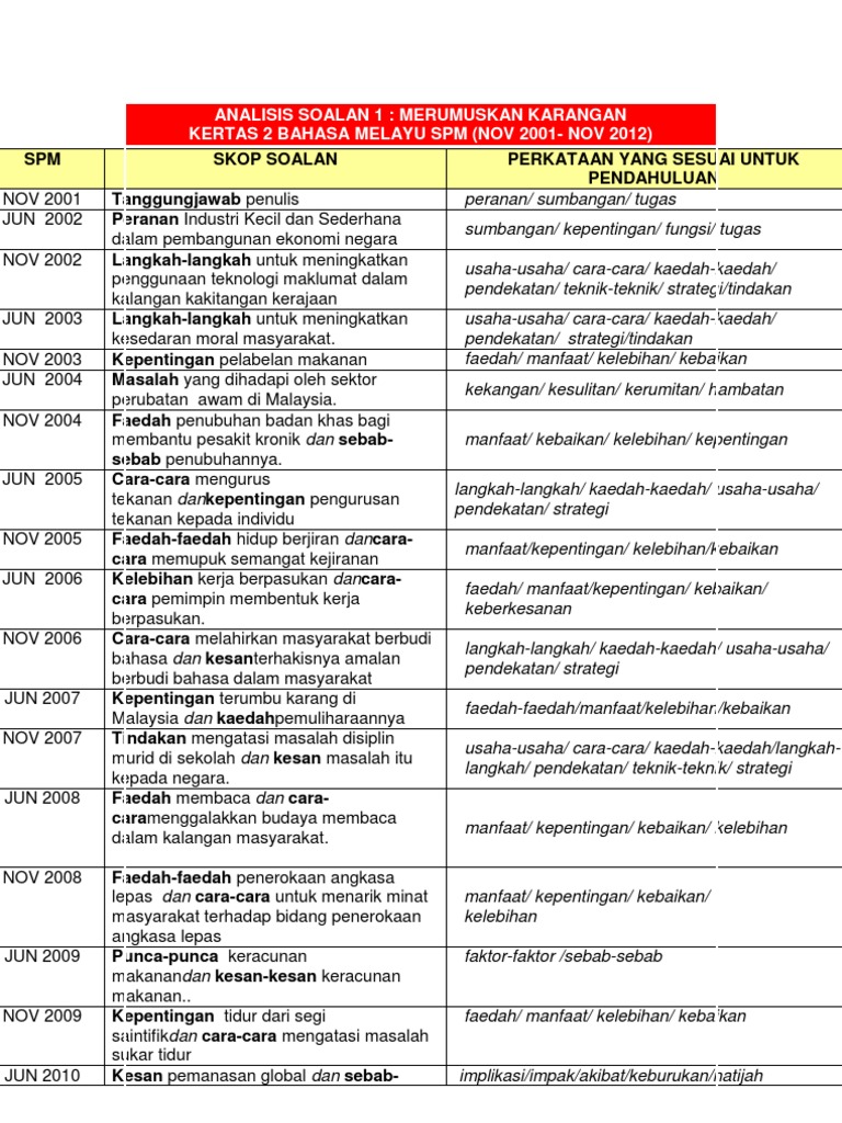 Analisis Soalan Rumusan Spm Sebenar 2008 2018
