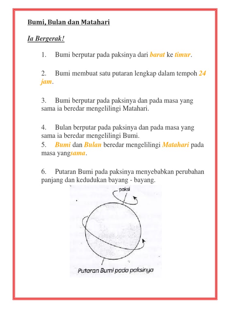 Geografi Tingkatan 1 Bab 9 Pergerakan Bumi Dalam Sistem Suria Nota