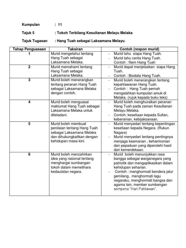 Rph Tahun 4 Hang Tuah Sebagai Laksamana Melaka