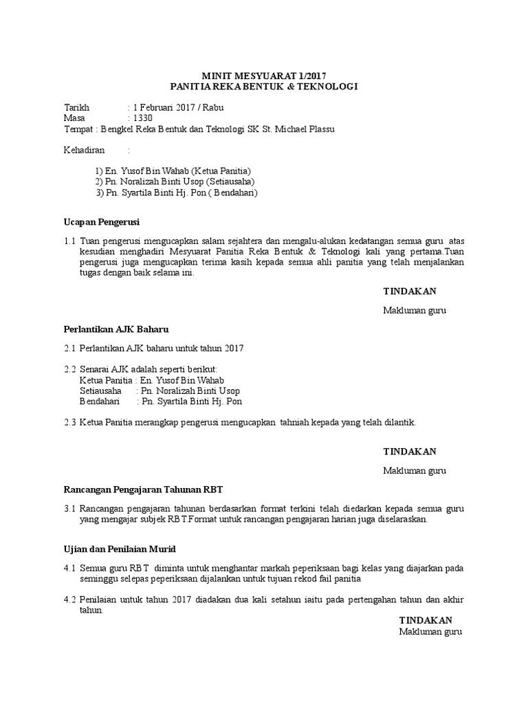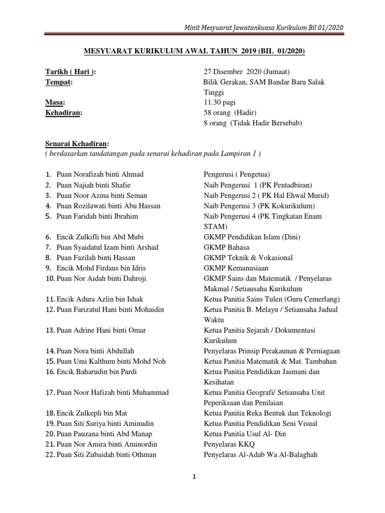 Minit Mesyuarat Psv Bil1 2020 Pages 1 8 Text Version Anyflip