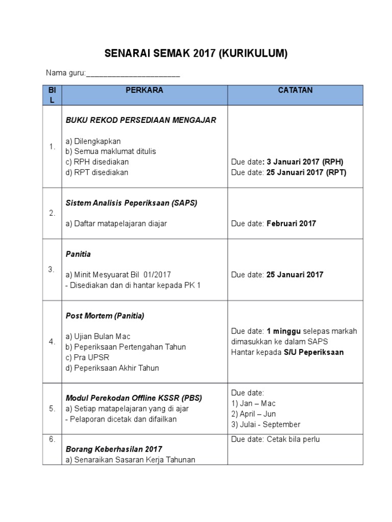 Doc Nota 1 Senarai Semak Semua Nadhirah Hazwani Academia Edu